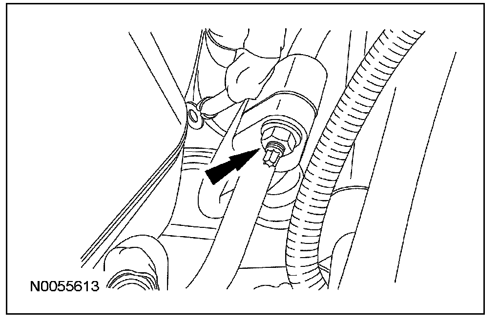 50. Remove the nut from the accumulator-to-manifold and tube assembly and position aside.