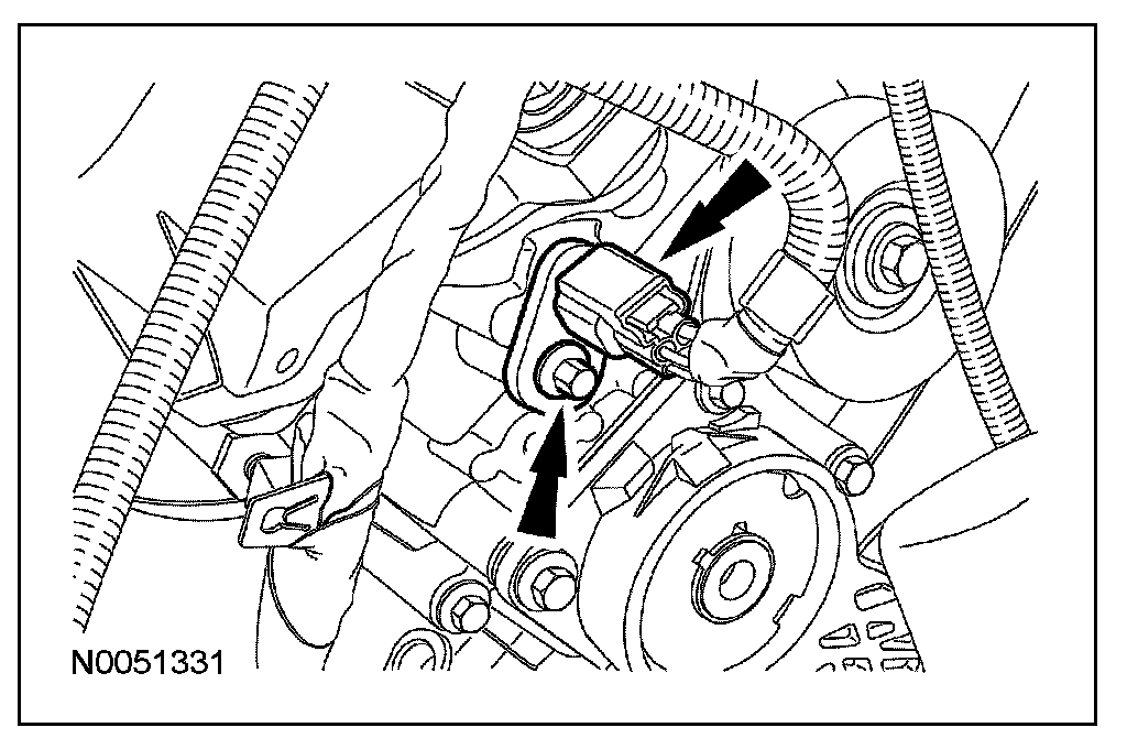 Remove the bolts and the Camshaft Position (CMP) sensors (1 each side). Discard the O-ring seals.