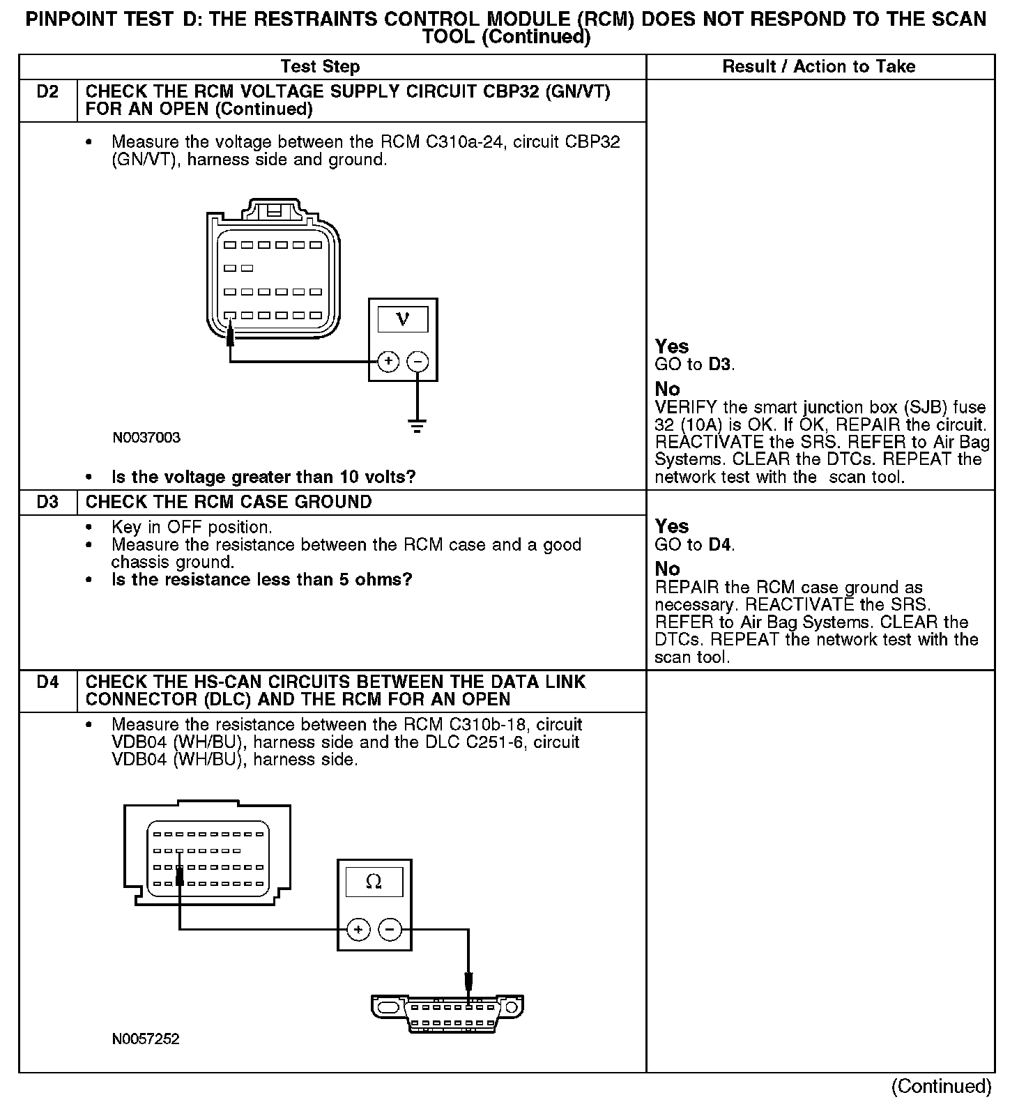 PINPOINT TEST D: THE RESTRAINTS CONTROL MODULE (RCM) DOES NOT RESPOND TO THE SCAN TOOLNormal Operation