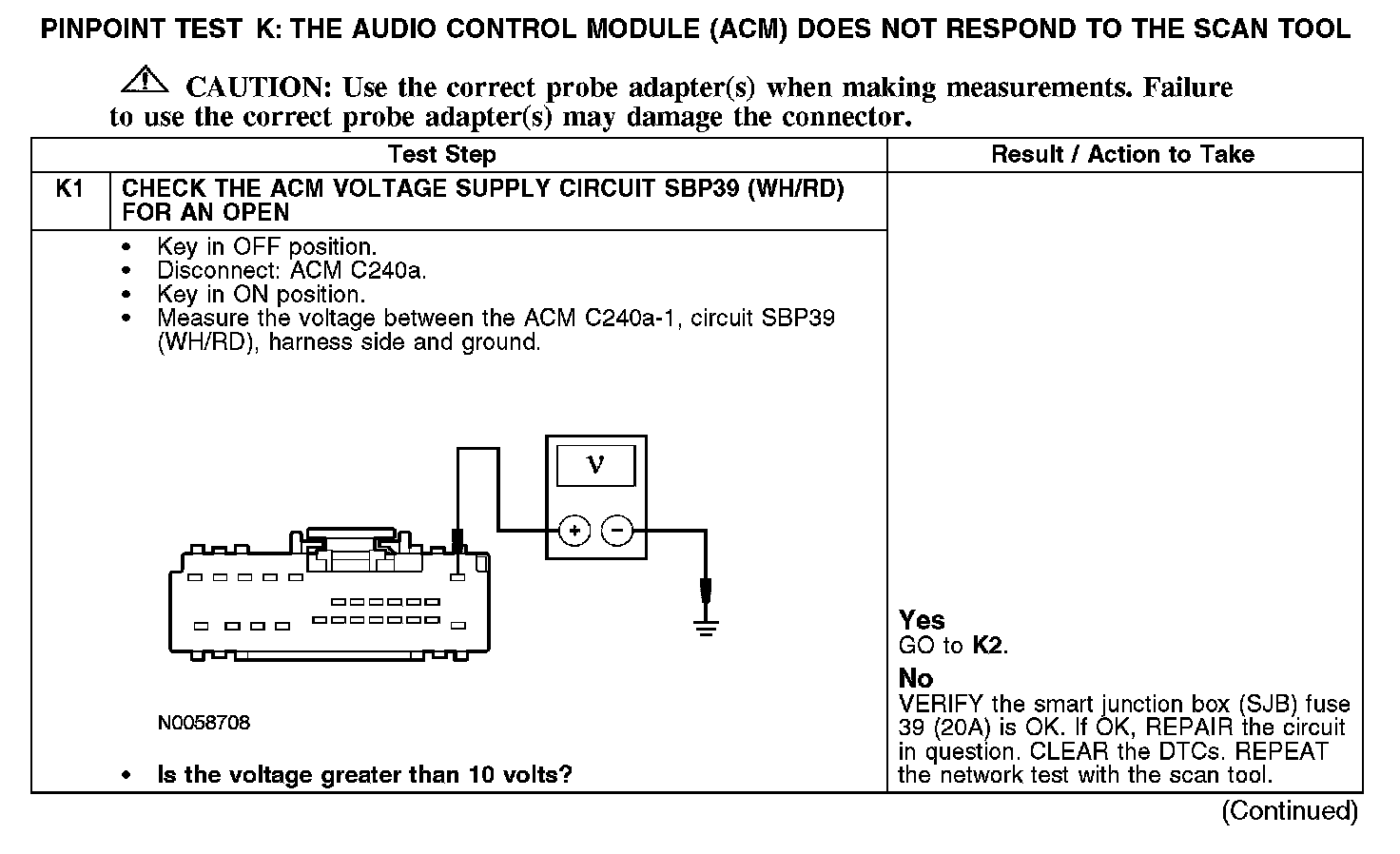 Test K: The Audio Control Module (ACM) Does Not Respond To The Scan Tool