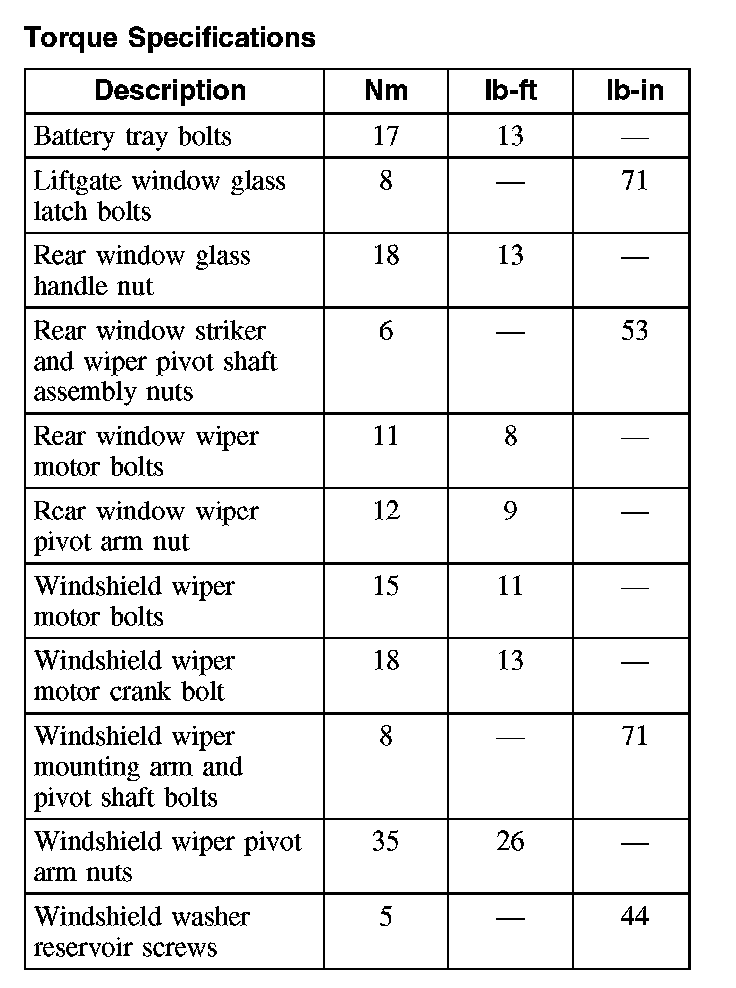 Torque Specifications
