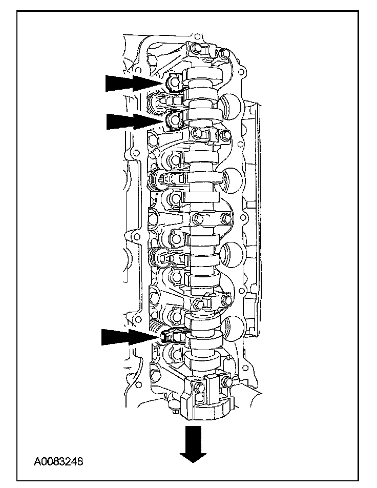 21. CAUTION: The camshaft bearing caps must be installed in their original locations. Record camshaft bearing cap locations. Failure to follow these instructions may result in engine damage.