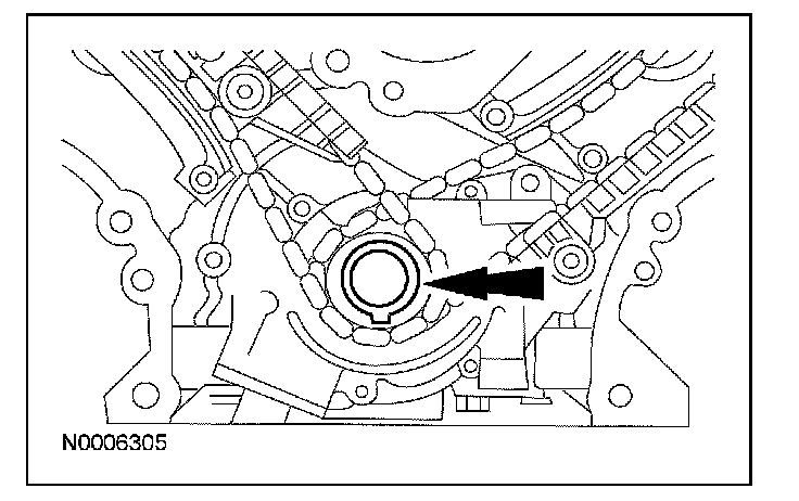 ^ The camshaft front thrust bearing cap contains an oil metering groove. Make sure the groove is free of foreign material.