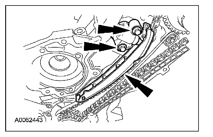 Remove the bolts, the LH timing chain tensioner and tensioner arm.