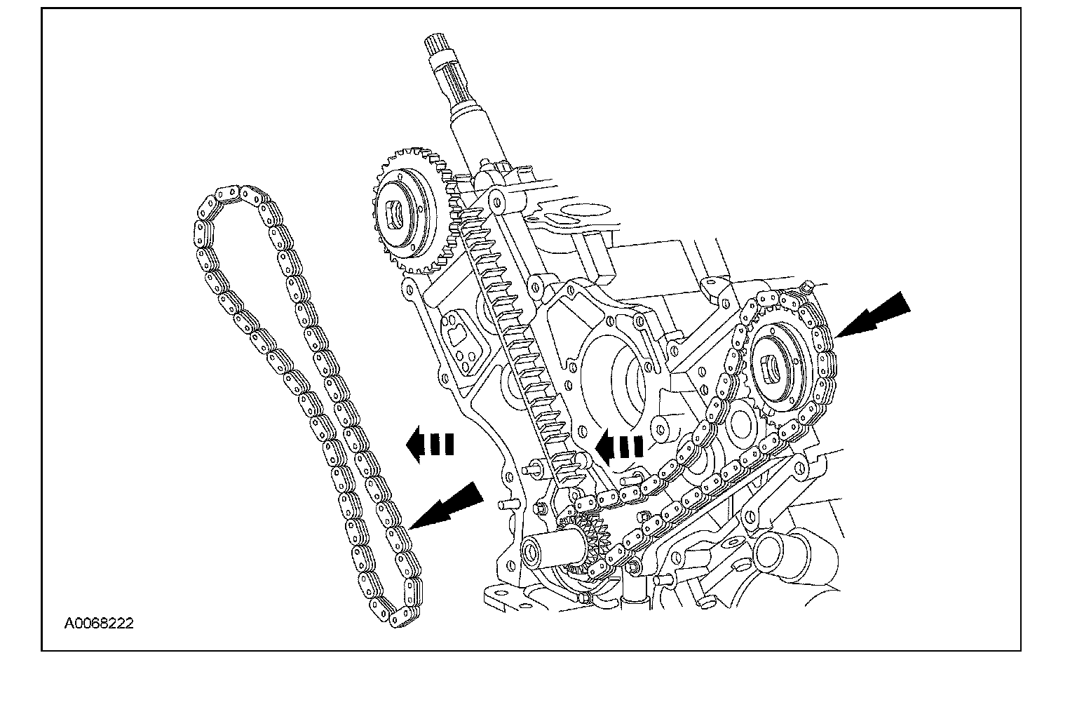 ^ Remove the RH timing chain from the crankshaft sprocket.