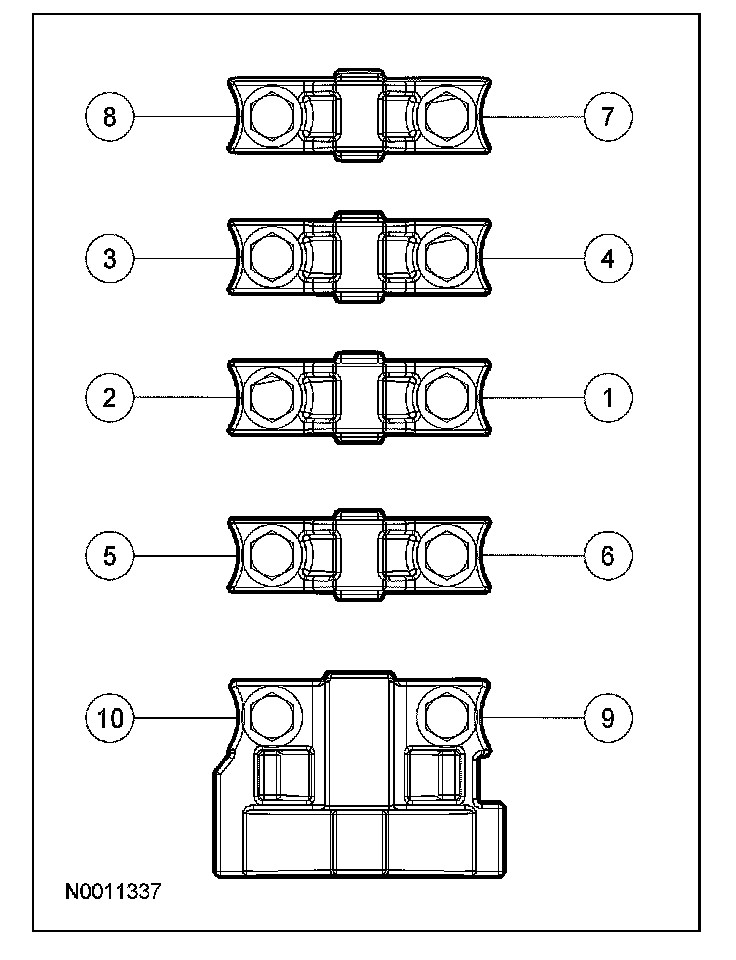 Remove the remaining bolts in the sequence shown and remove the remaining LH camshaft bearing caps.