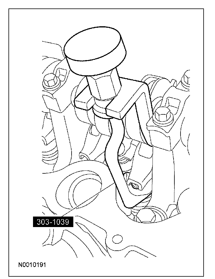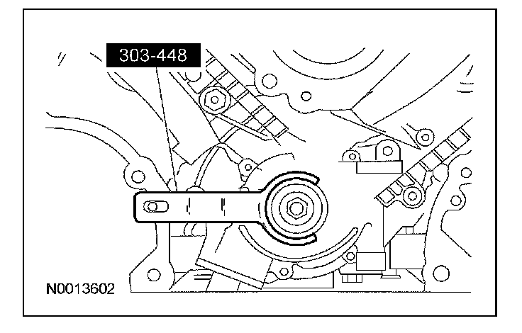 10. CAUTION: If one or both of the tensioner mounting bolts are loosened or removed, the tensioner-sealing bead must be inspected for seal integrity. If cracks, tears, separation from the tensioner body or permanent compression of the seal bead is observed, install a new tensioner. Failure to follow these instructions may result in engine damage.