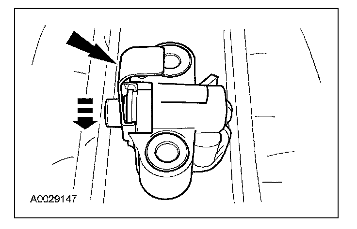 7. Install a retaining clip on the tensioner to hold the plunger in during installation.