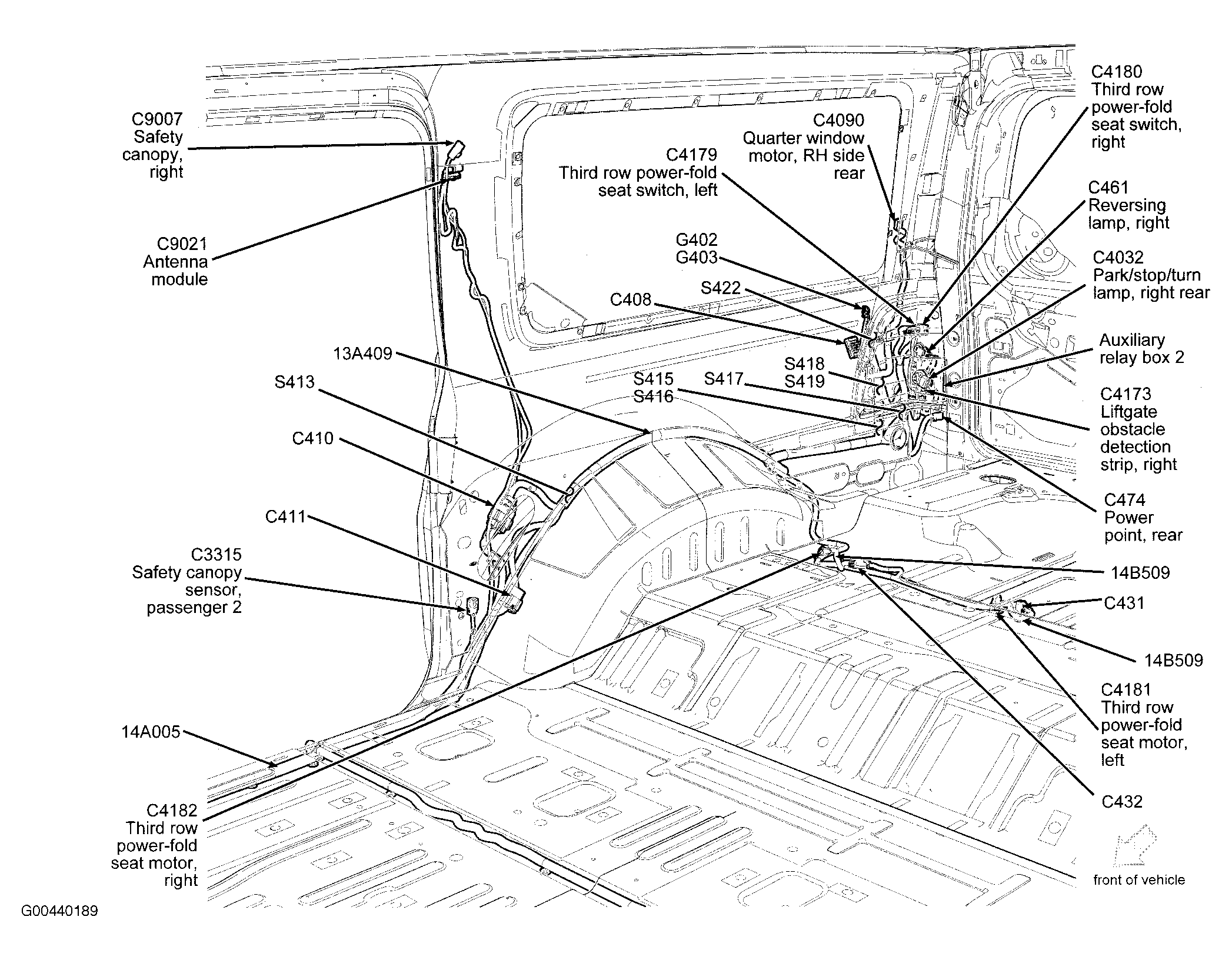 Auxiliary Relay Box 2 (Expedition) Right rear corner of vehicle. See Figure.