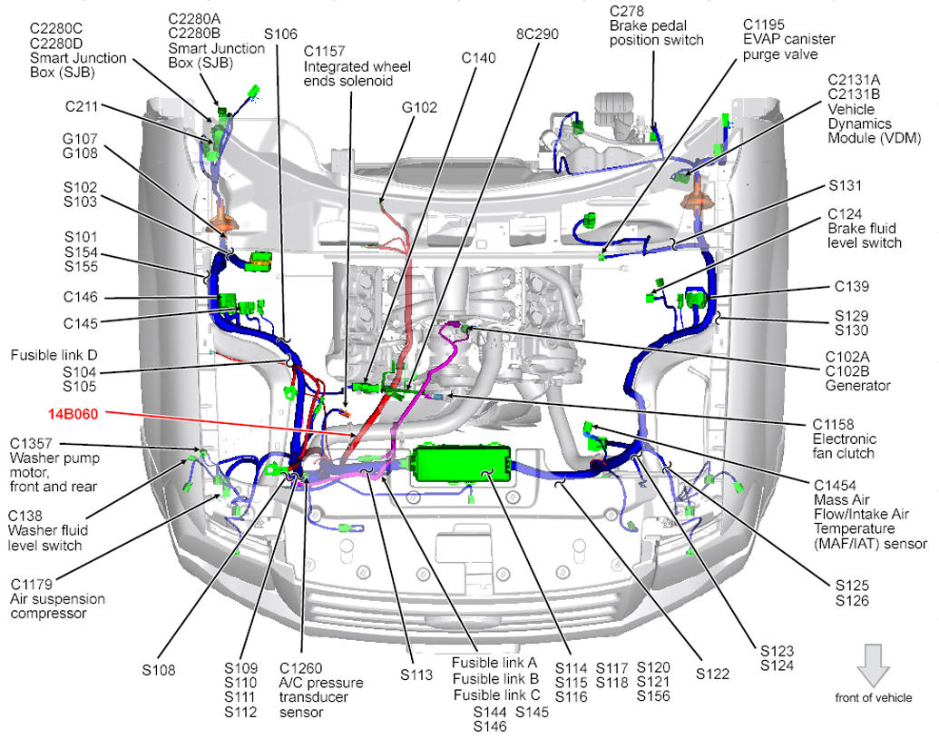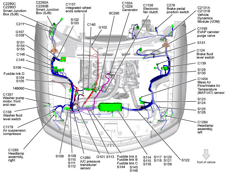 Battery Junction Box (BJB) (Navigator) Center front of engine compartment. See Figure.