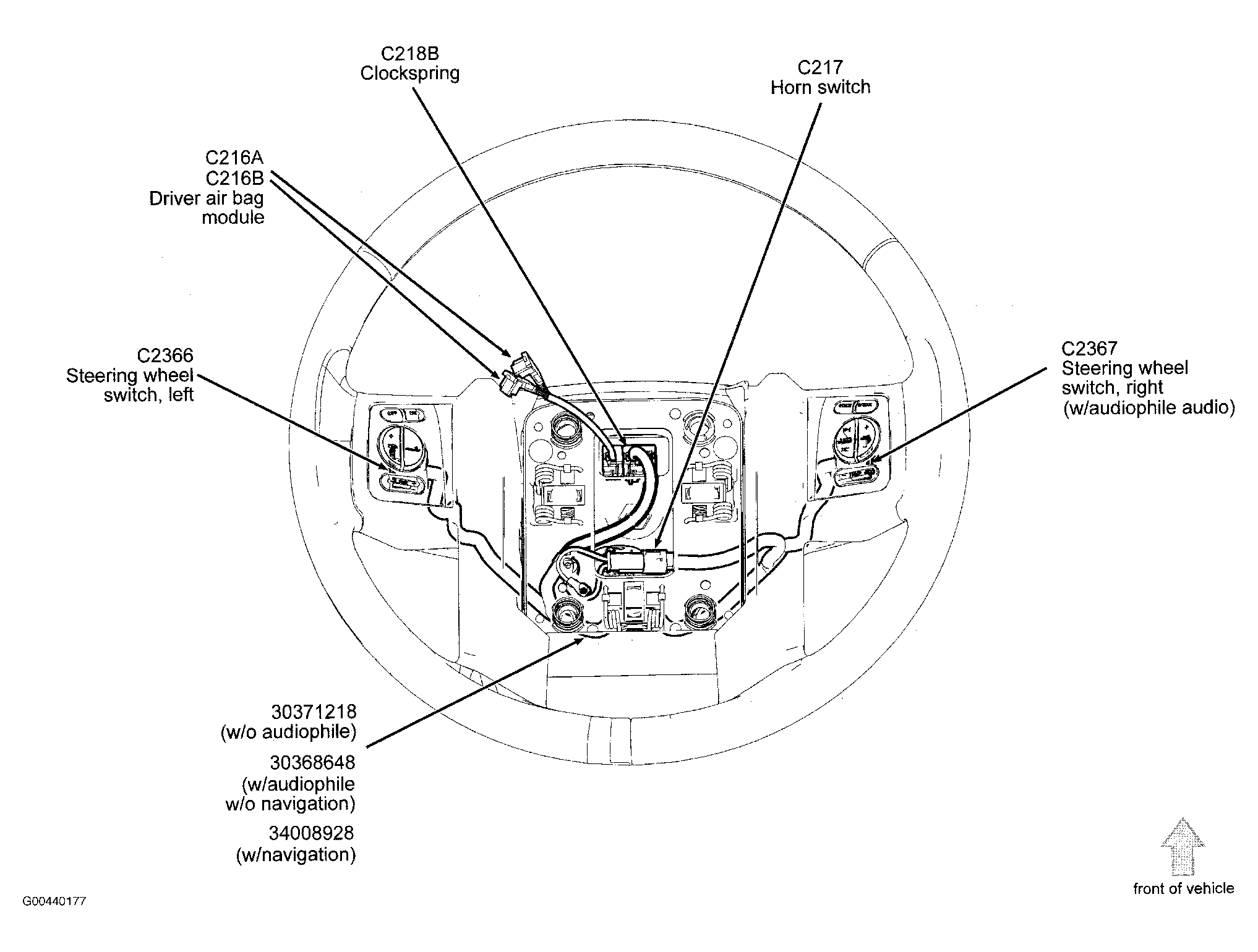 | Driver Air Bag Module | Center of steering wheel. See Figure. |