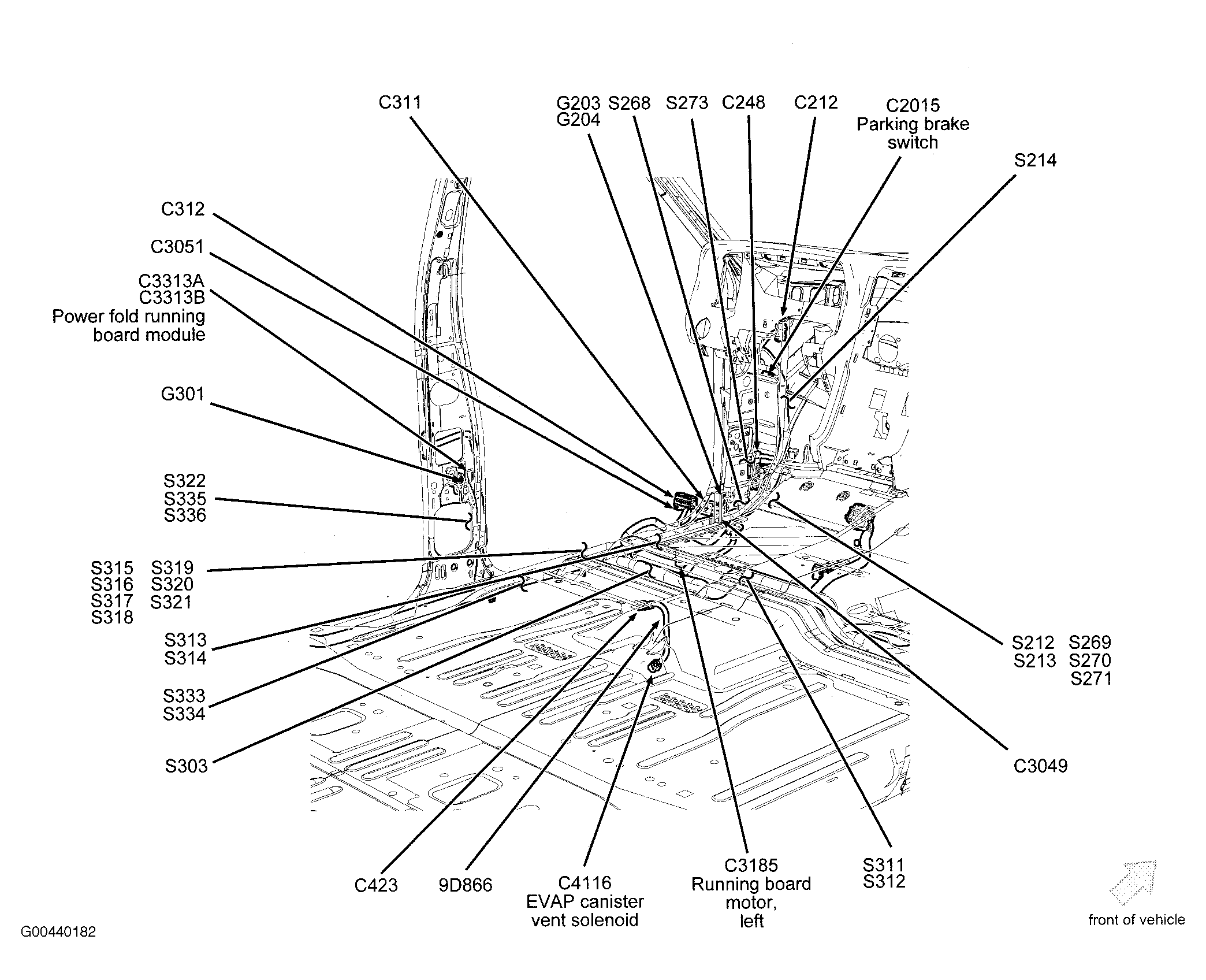 | Power Fold Running Board Module | In left "B" pillar. See Figure. |