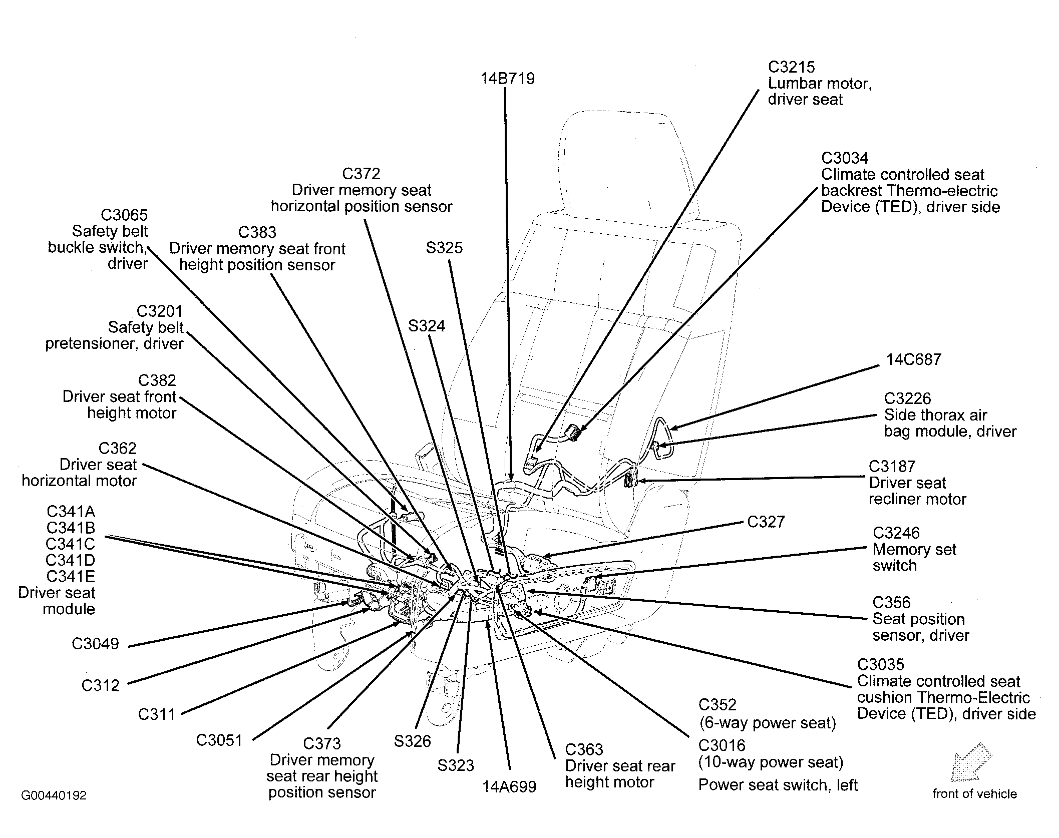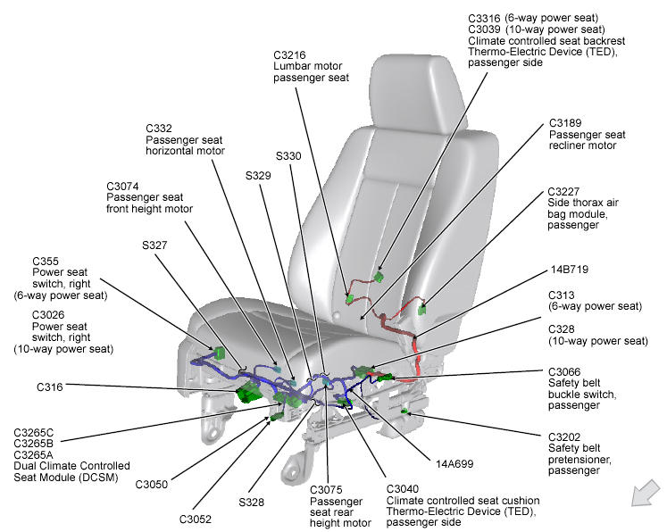 | Climate Controlled Seat Module (Passenger Side) | Under front passenger's seat. See Figure. |