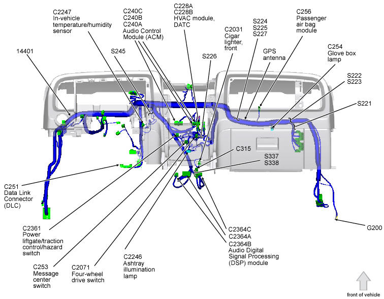 | Passenger Air Bag Module (Expedition) | Behind right side of dash. See Figure. |