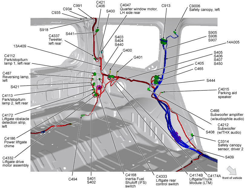 | Power Liftgate Module (Expedition-EL & Navigator-L) | Left side of cargo area, behind trim. See Figure. |