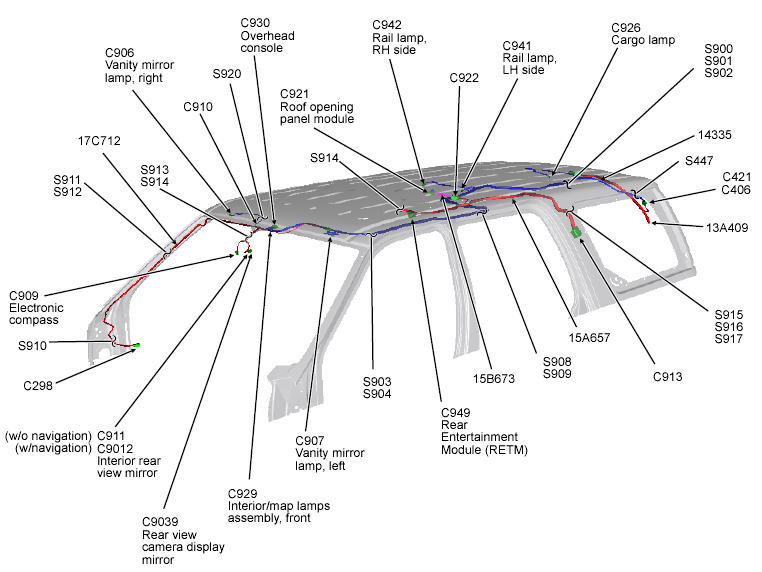 | Roof Opening Panel Module (Navigator) | In roof panel. See Figure. |