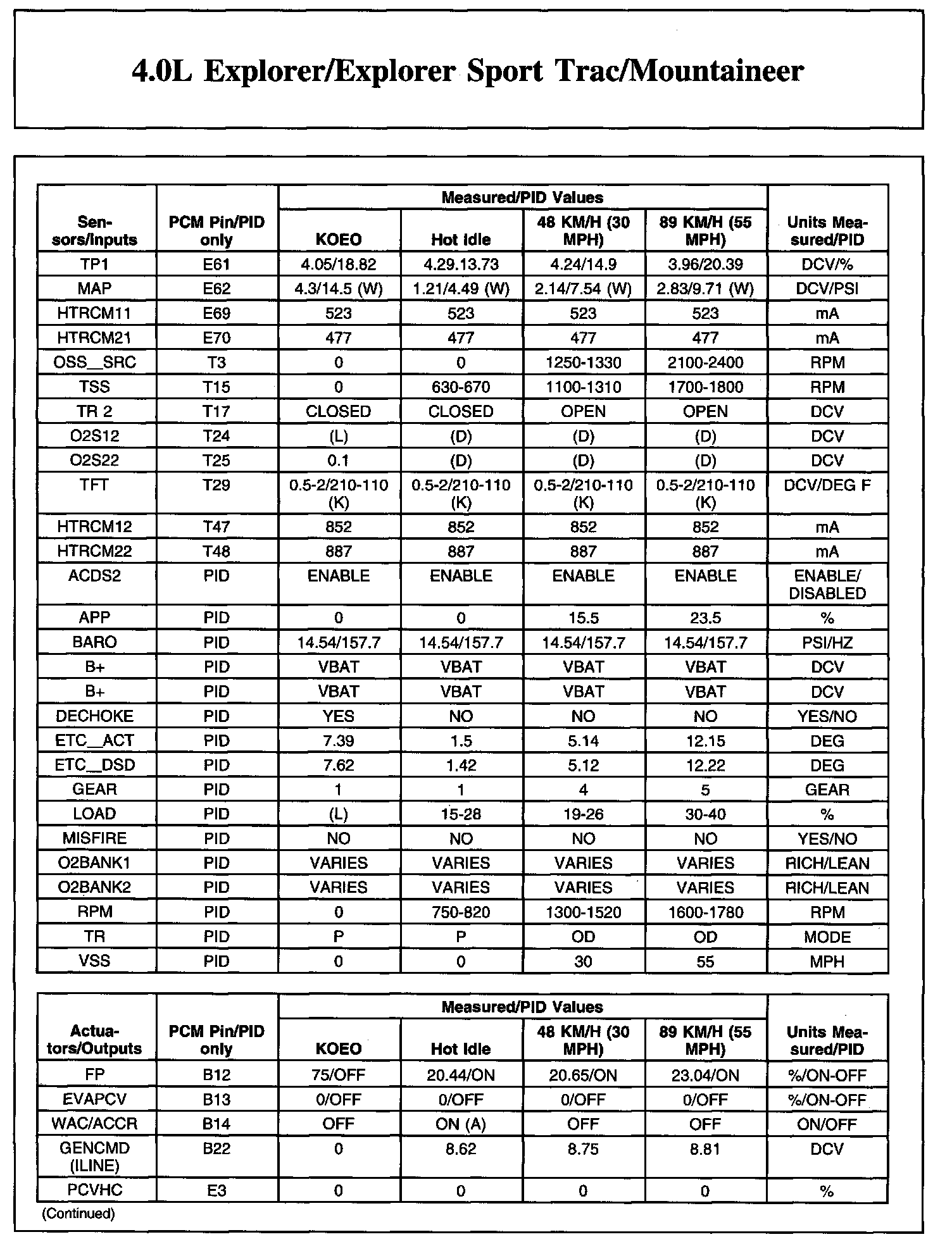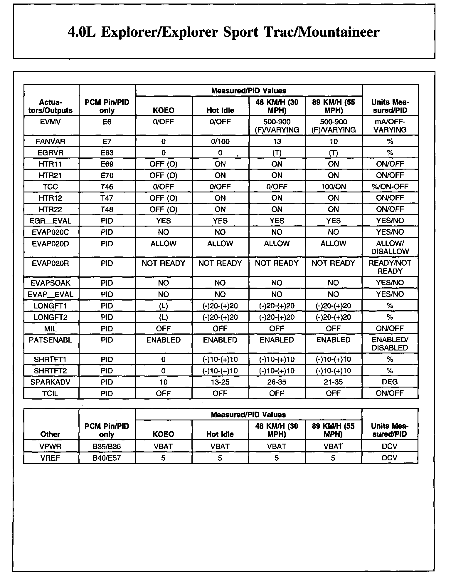 Home >> Ford >> 2008 >> Explorer 2WD V6-4.0L >> Repair and Diagnosis >> Powertrain Management >> Computers and Control Systems >> Testing and Inspection >> Scan Tool Testing and Procedures >> Typical Diagnostic Reference Values