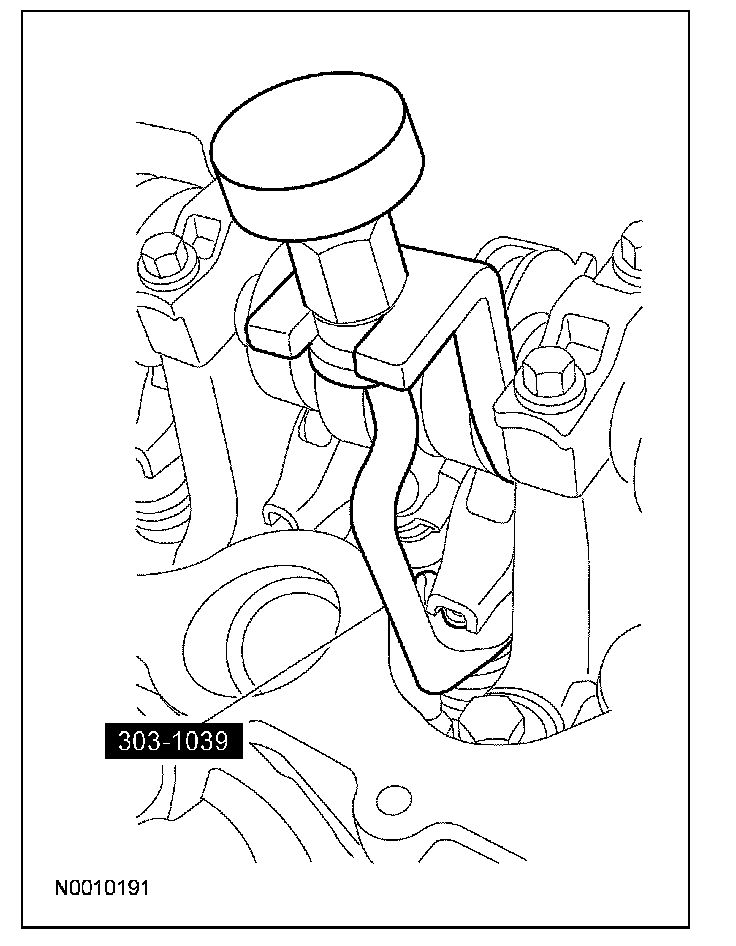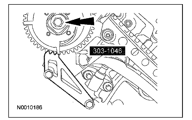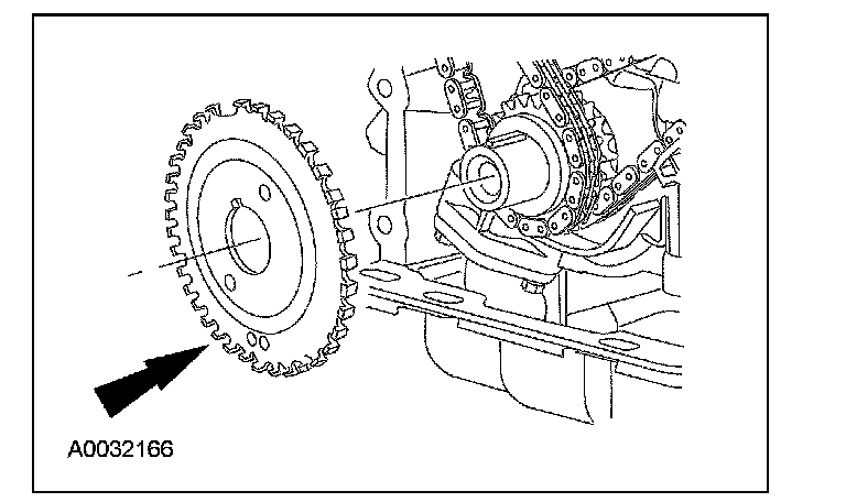 14. CAUTION: Damage to the camshaft phaser sprocket assembly will occur if mishandled or used as a lifting or leveraging device.