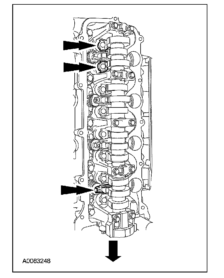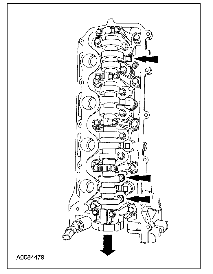 21. CAUTION: The camshaft bearing caps must be installed in their original locations. Record camshaft bearing cap locations. Failure to follow these instructions may result in engine damage.