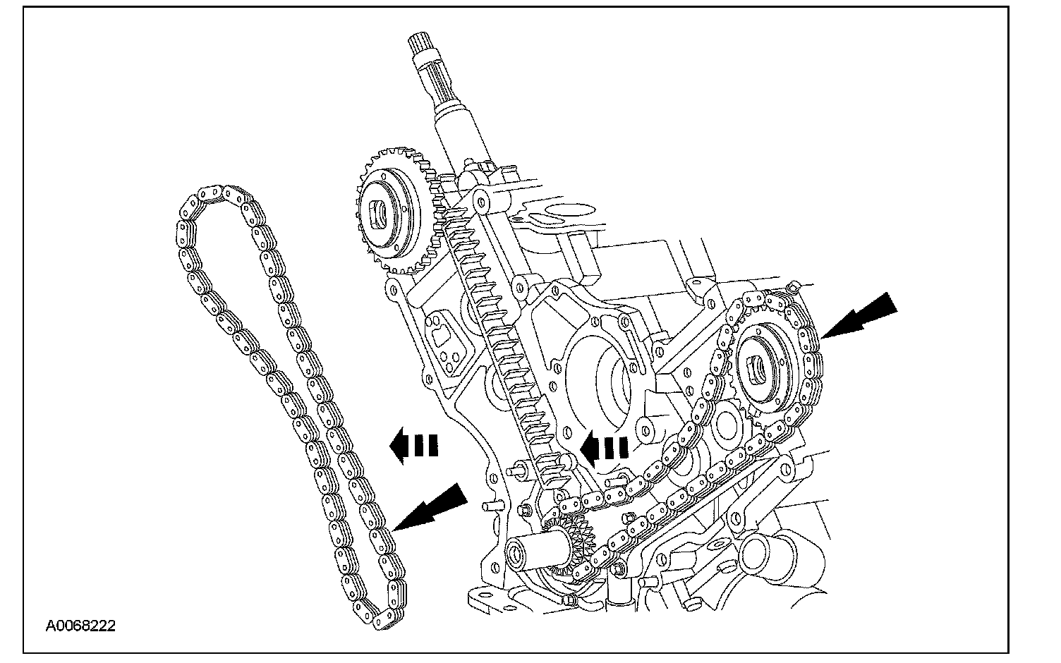 ^ Remove the RH timing chain from the crankshaft sprocket.