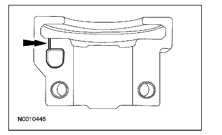 ^ The camshaft front thrust bearing cap contains an oil metering groove. Make sure the groove is free of foreign material.