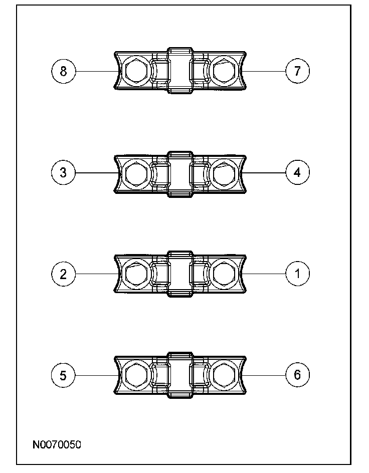 Remove the remaining bolts in the sequence shown and remove the LH cylinder head camshaft bearing caps.