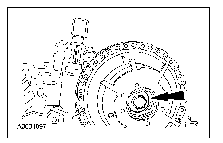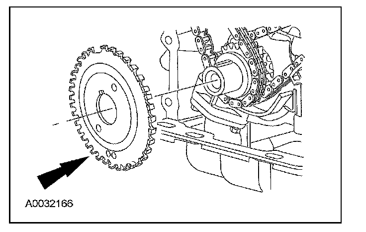 15. CAUTION: Damage to the camshaft phaser sprocket assembly will occur if mishandled or used as a lifting or leveraging device.
