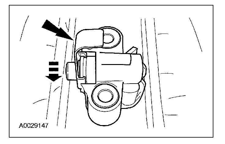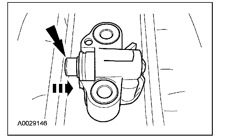 9. Install a retaining clip on the tensioner to hold the plunger in during installation.