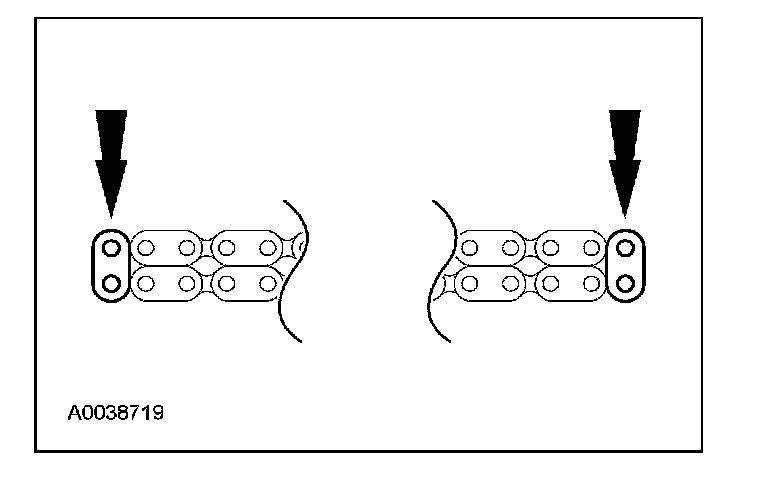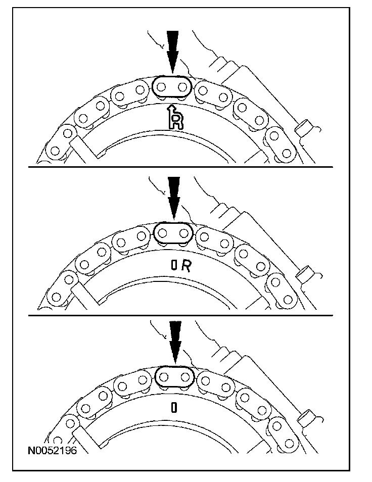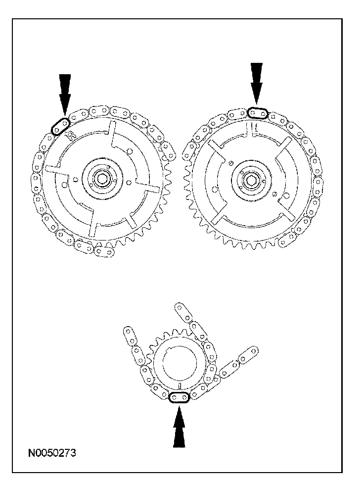 Position the RH timing chain on the camshaft sprocket. Make sure the camshaft sprocket timing mark is aligned with the colored (marked) chain link.