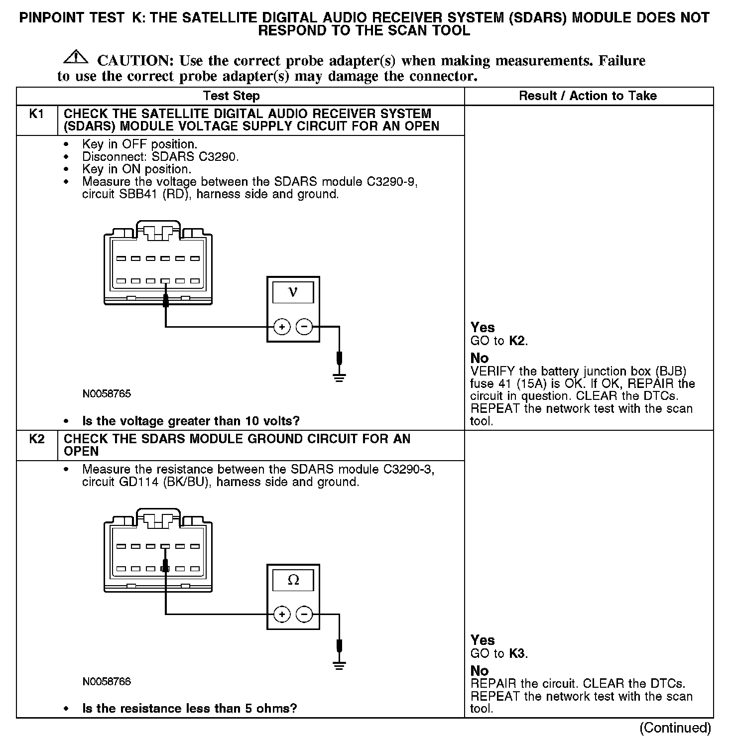 Test K: The Satellite Digital Audio Receiver System (SDARS) Module Does Not Respond To The Scan Tool