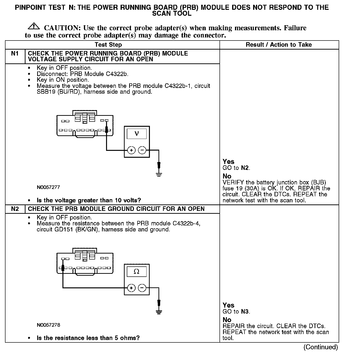 PINPOINT TEST N: THE POWER RUNNING BOARD MODULE DOES NOT RESPOND TO THE SCAN TOOL