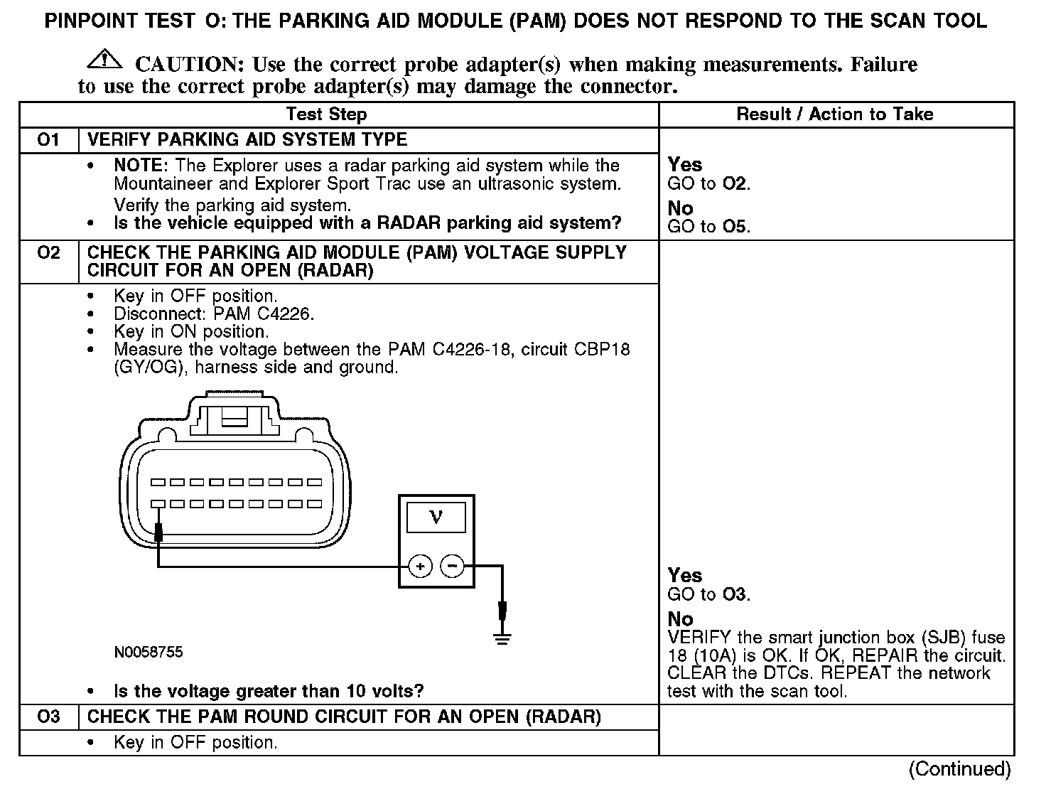 PINPOINT TEST O: THE PARKING AID MODULE DOES NOT RESPOND TO THE SCAN TOOLNormal Operation