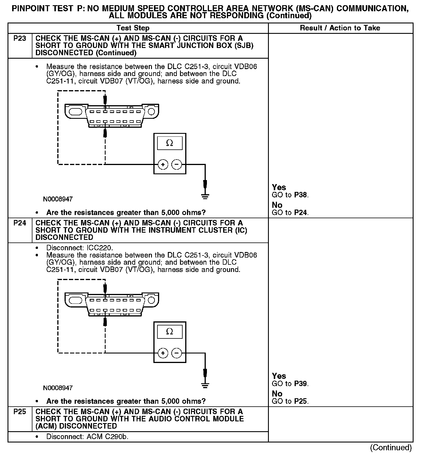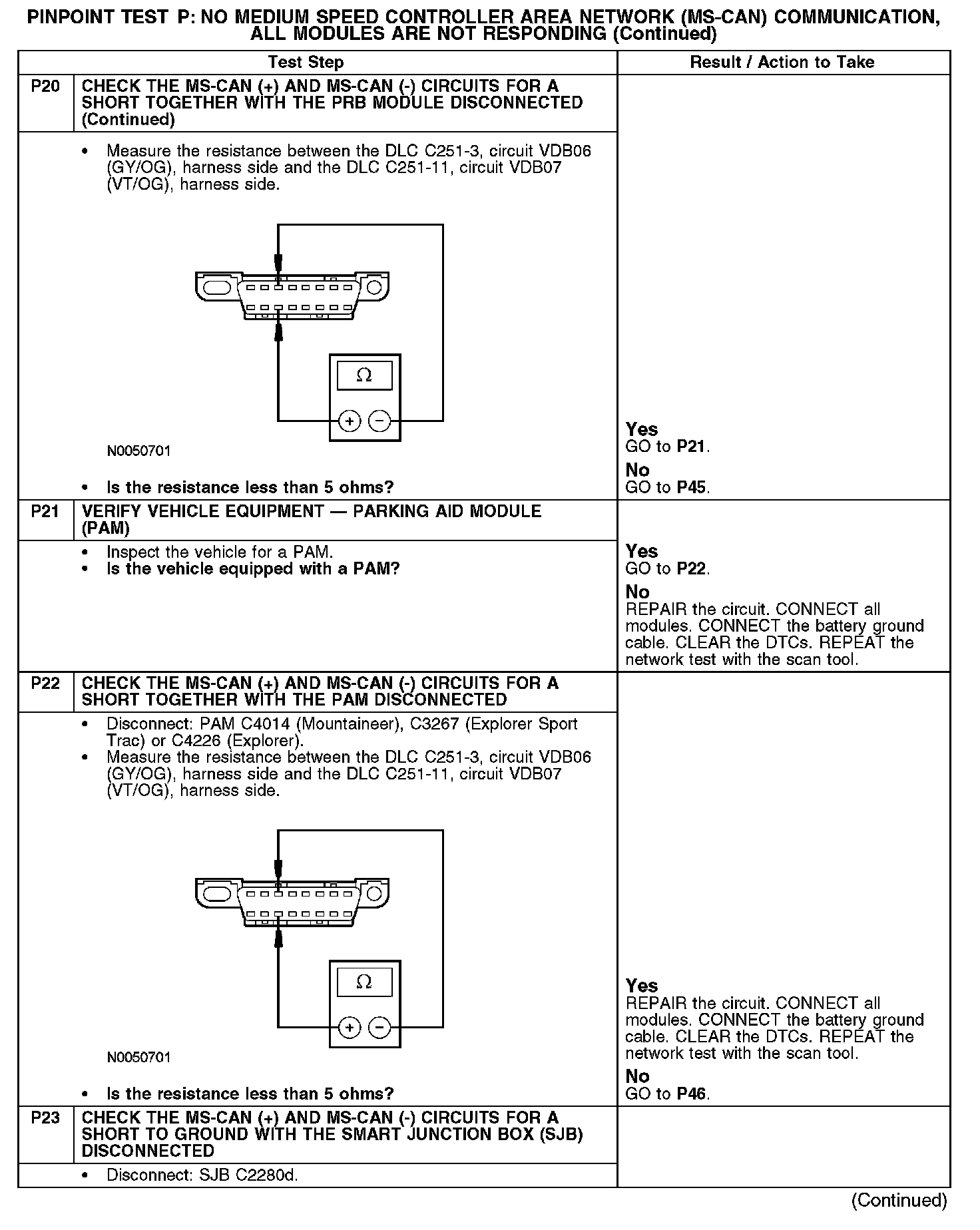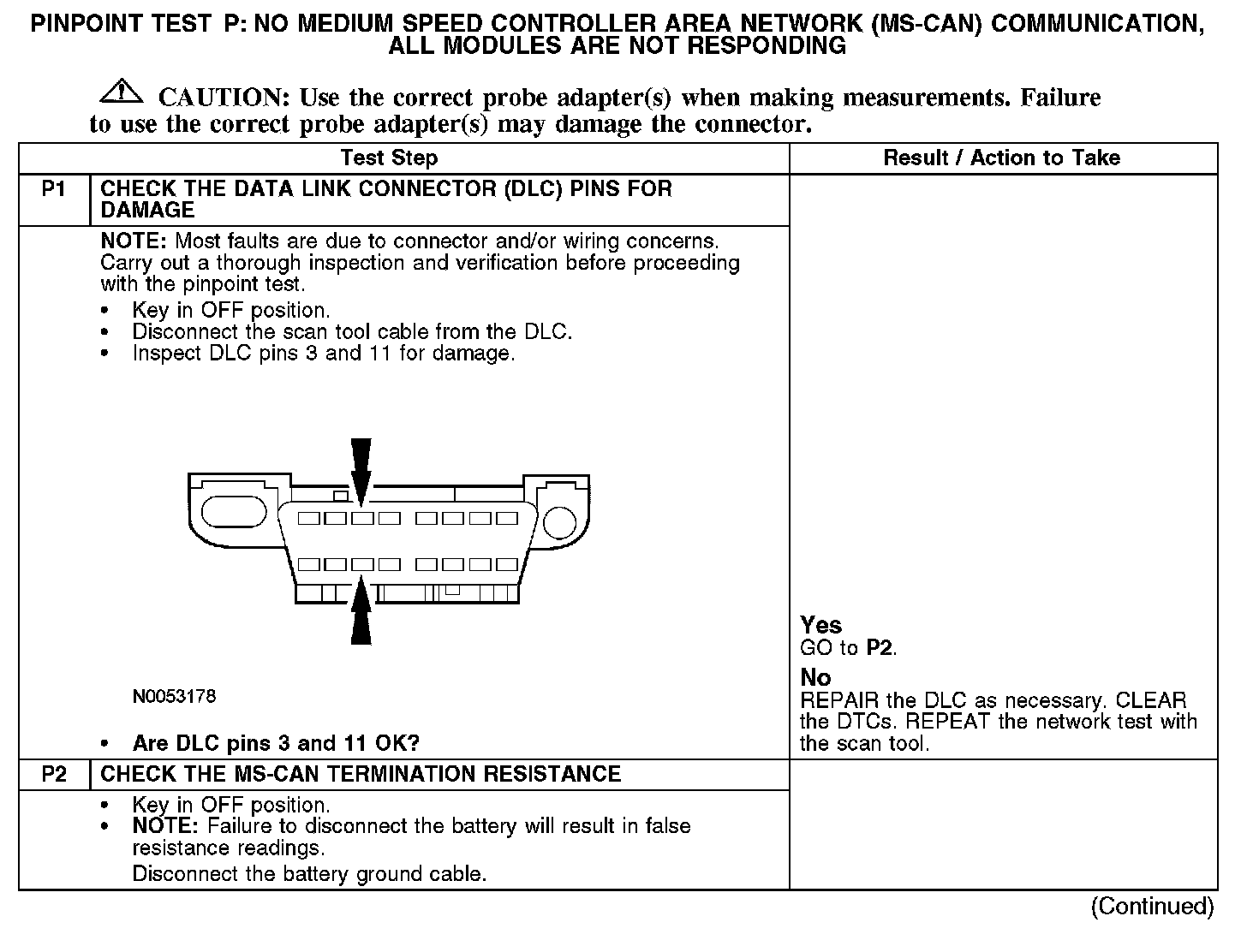 Test P: No Medium Speed Controller Area Network (MS-CAN) Communication, All Modules Are Not Responding