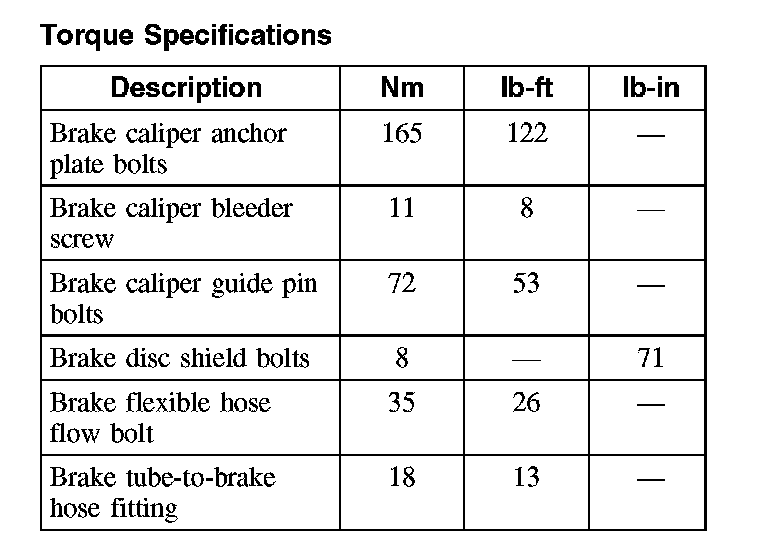 Torque Specifications, Front