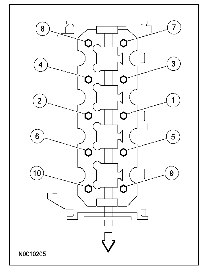 Camshaft Bearing Cap Bolts 10 Nm (89 lb-in).