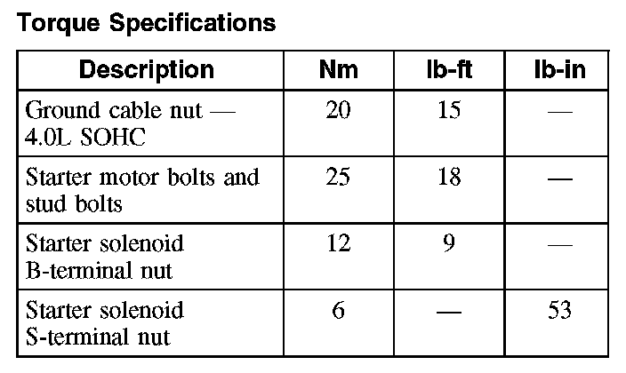 Torque Specifications:
