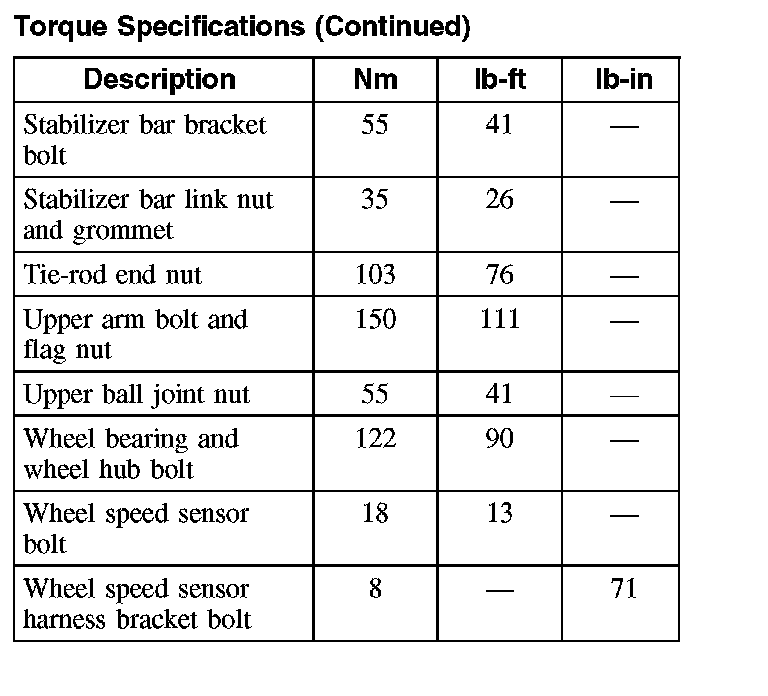 Torque Specifications