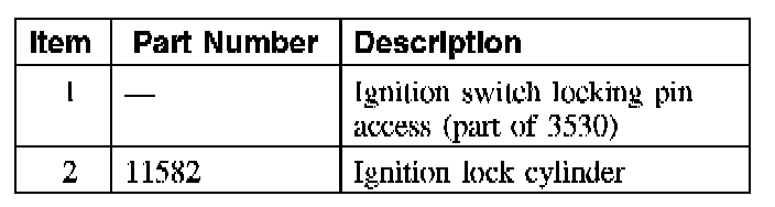 1. With the ignition switch in the ON position, press the locking pin with a suitable tool and remove the ignition lock cylinder.