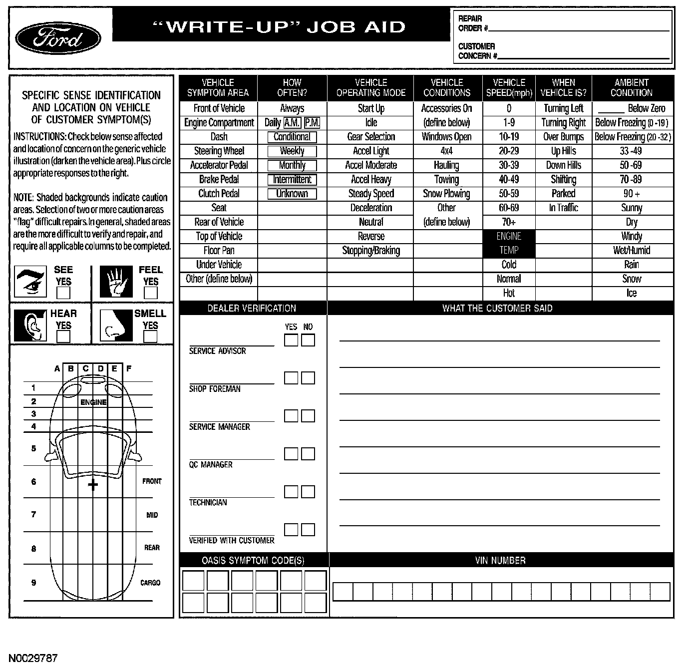 To assist the service advisor and the technician, a Write-Up Job Aid used during the interview process is included with this material. The Write-Up Job Aid serves as a place to record all important symptom information.