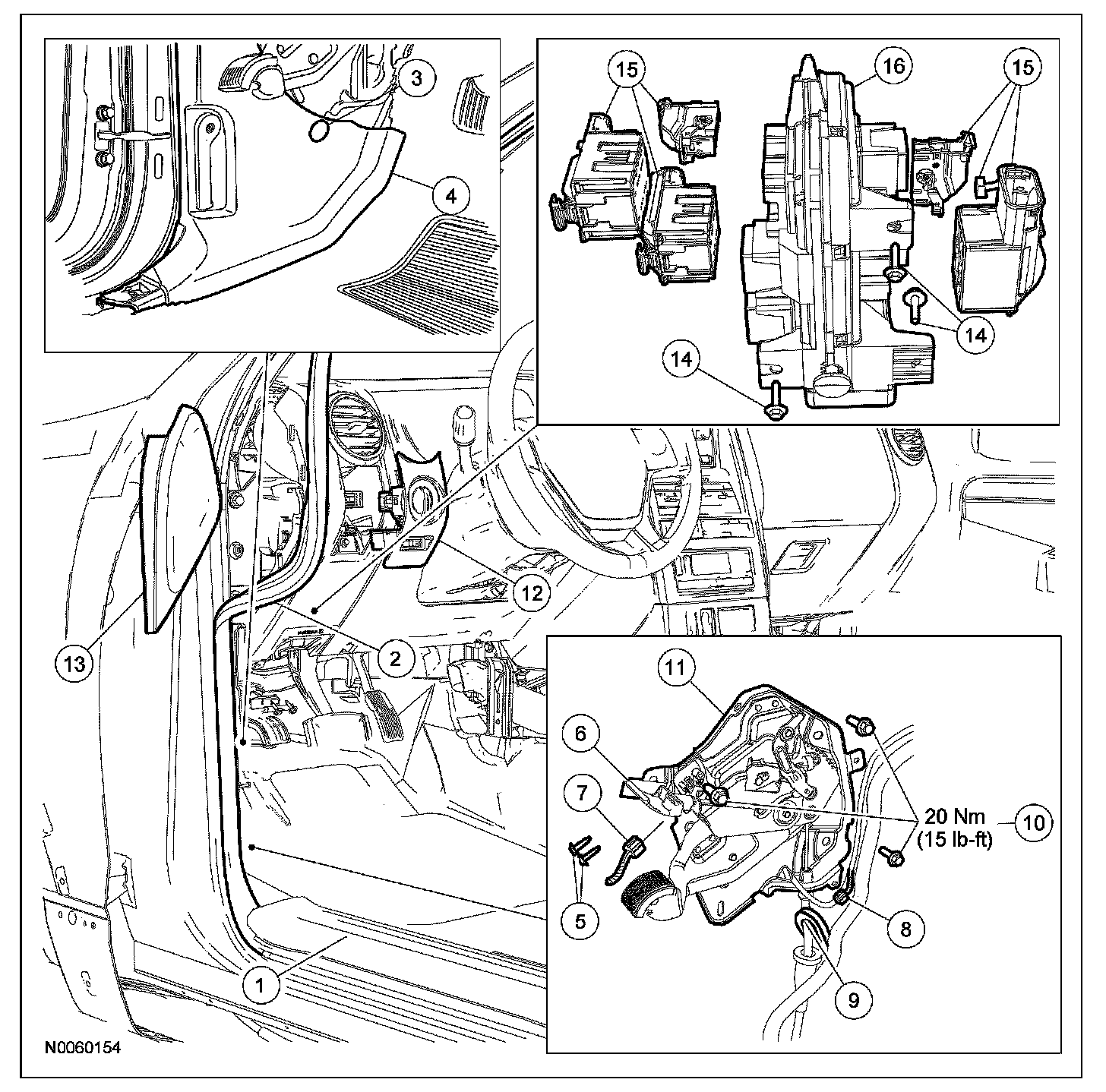 - Tighten to 20 Nm (15 lb-ft).