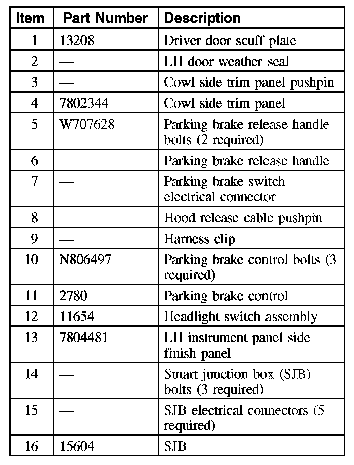 9. NOTE: Rotating the parking brake control counterclockwise allows enough access to clear the instrument panel reinforcement.