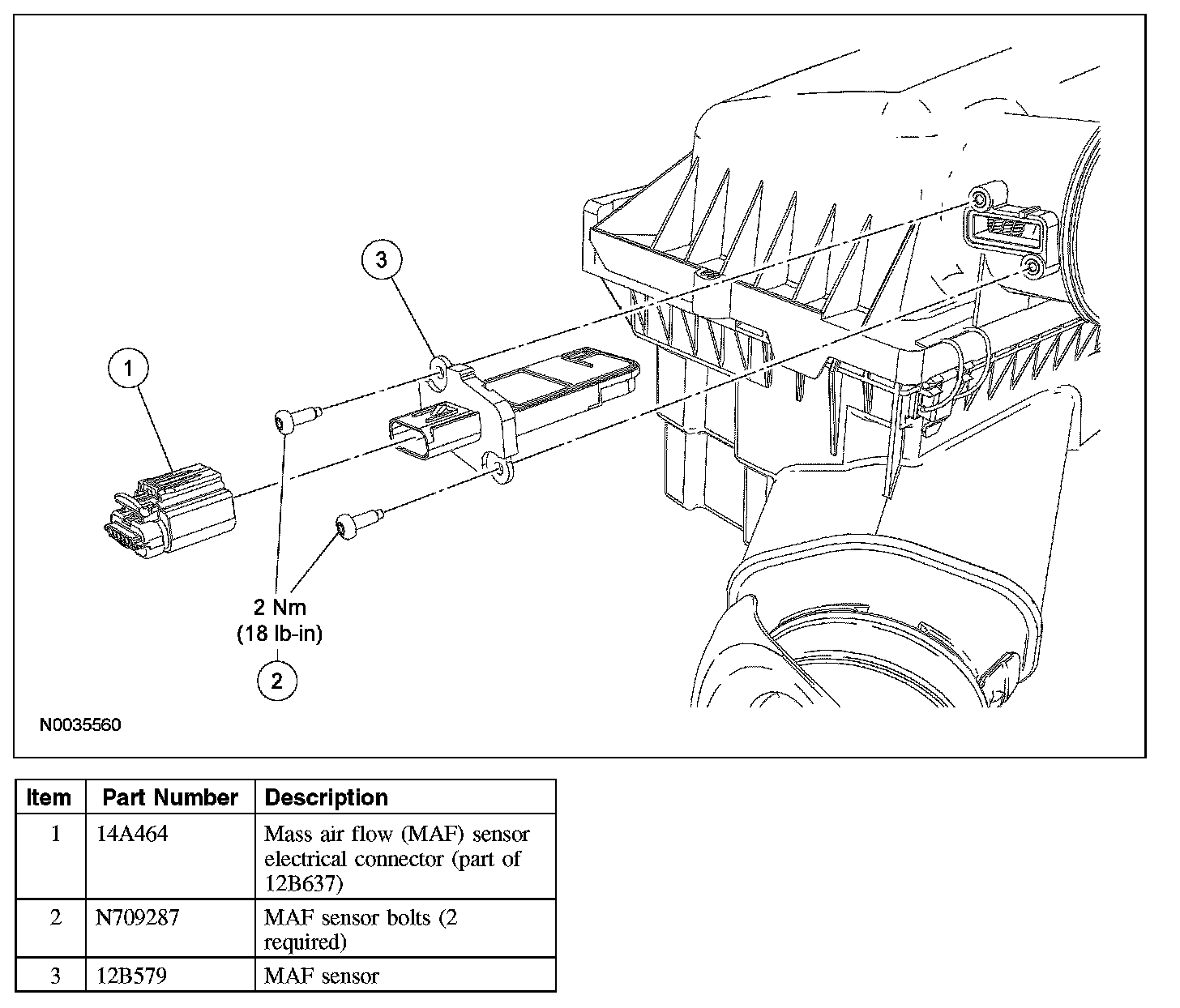 1. Disconnect the mass air flow (MAF) sensor electrical connector.