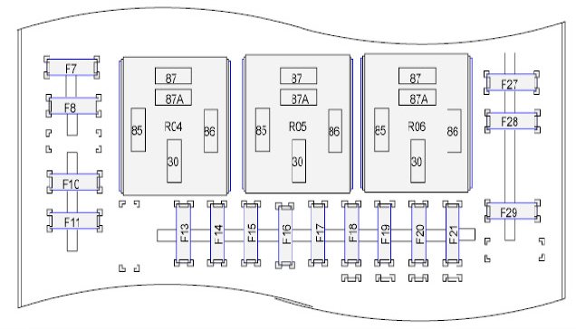 Fuse/Locations and Relay/Locations contains a view of the fuse/relay box, in which all fuses and relays are identified. Fuse and Relay Numbering and Naming. Fuse and relay numbering and naming follow the indication of the fuse panel cover. In addition for all removable relays, pin positions are added to illustrate proper orientation.