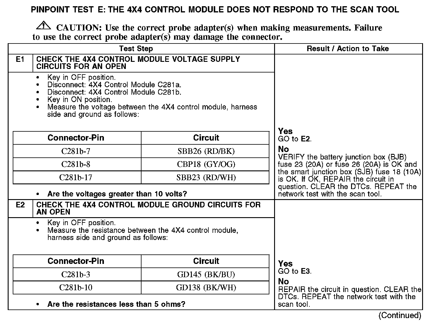 PINPOINT TEST E: THE 4X4 CONTROL MODULE DOES NOT RESPOND TO THE SCAN TOOLNormal Operation