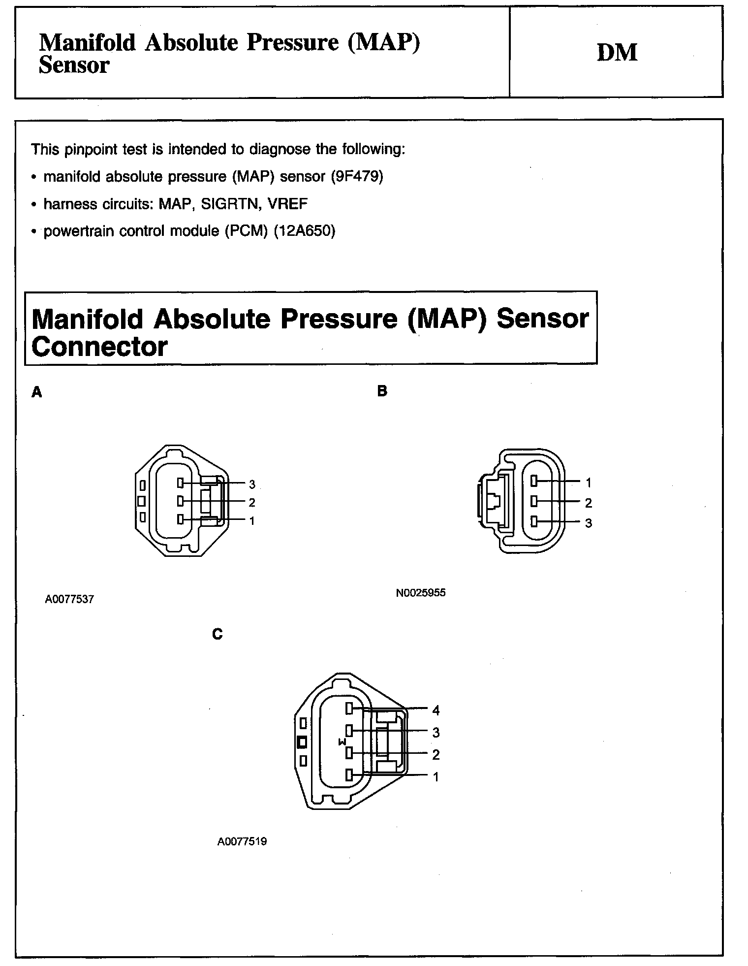 PINPOINT TEST DM: MANIFOLD ABSOLUTE PRESSURE (MAP) SENSORDescription And Manifold Absolute Pressure (MAP) Sensor Connector: