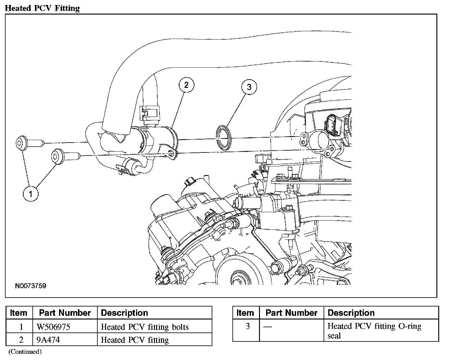 3. Install a new O-ring seal, position the heated PCV fitting and install the bolts.