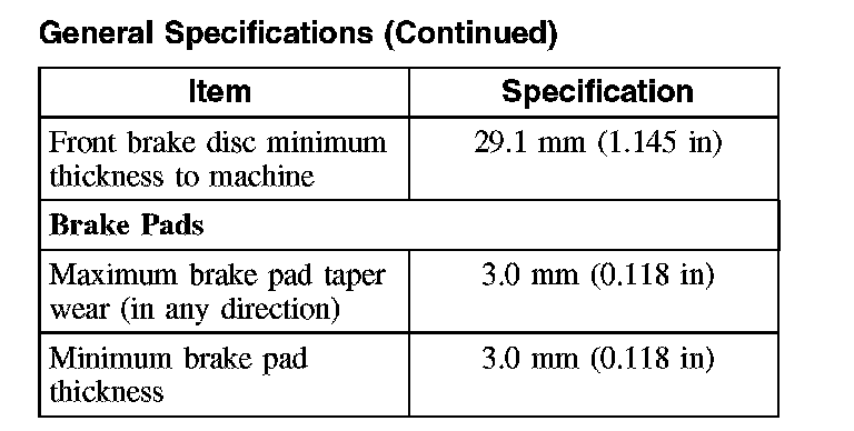 General Specifications, Front