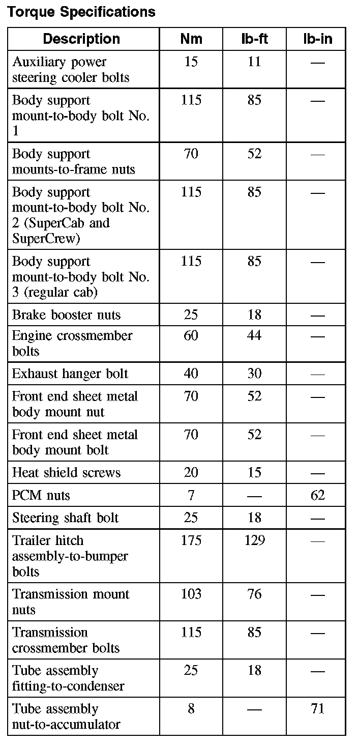 Torque Specifications: