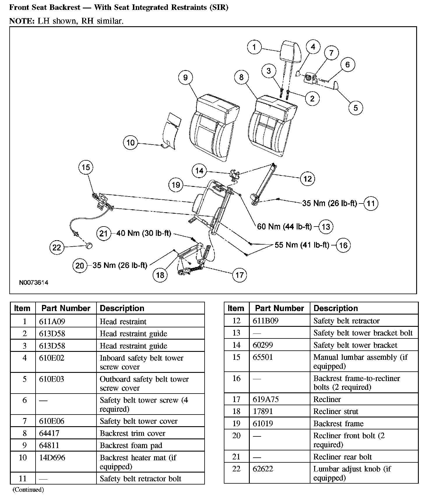 Front Seat Backrest - Without Seat Integrated Restraints (SIR):