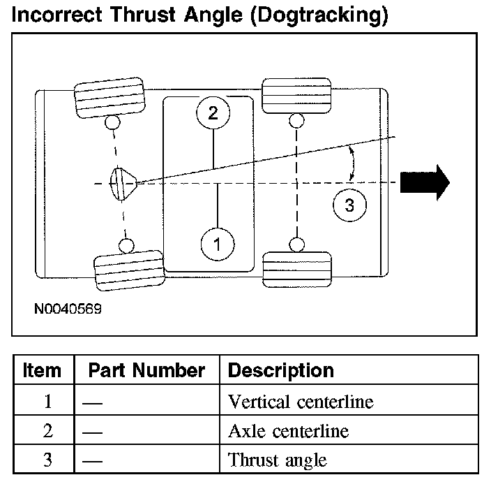 Incorrect thrust angle (dogtracking) is the condition in which the rear axle is not square to the chassis.